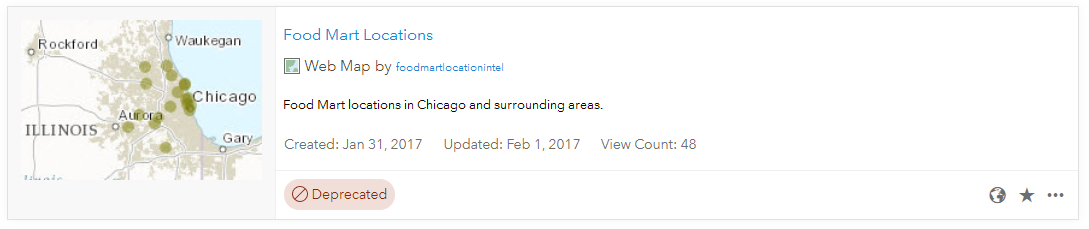 With the Item Information status bar as well as the Authoritative and Deprecated Content Status, ArcGIS Online makes it easy for you to create, designate and find quality content.