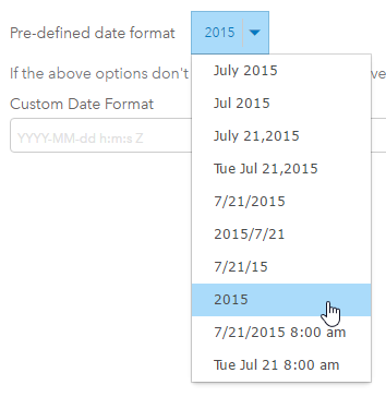For example, to display a year, choose the pre-defined date format “2015” from the drop-down. The Time Aware slider appears as shown below: