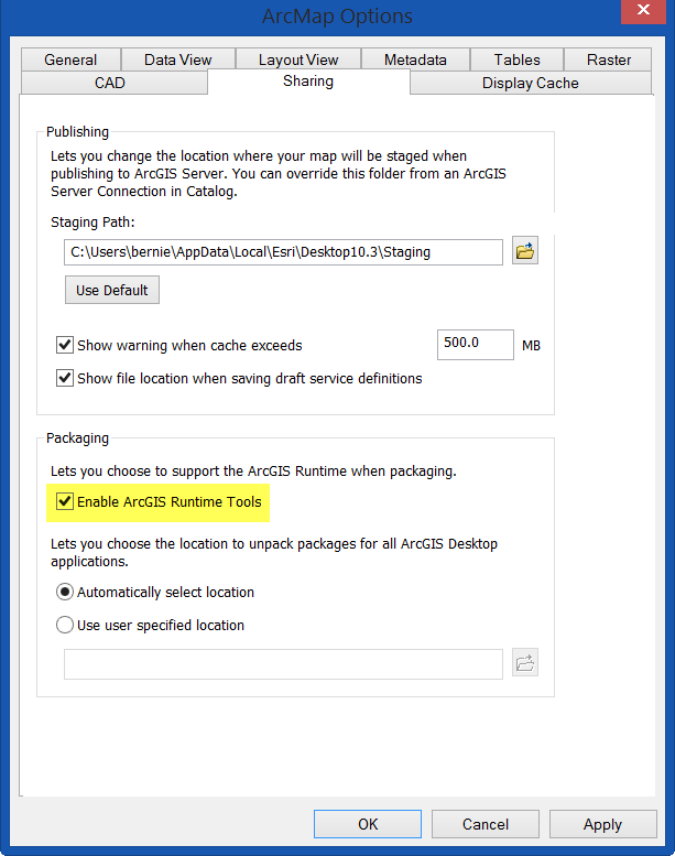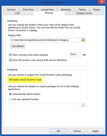 Step 3. Enable Share As Tile Package. The option to Share As Tile Package will not be available unless you have enabled the ArcGIS Runtime tools. In the Customize tab, choose ArcMap Options…
