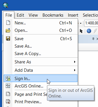Step 1. Open ArcMap and sign in to your account if you have not done so already. Click File, then Sign In…