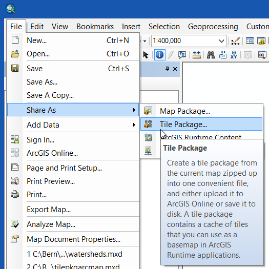 - How to create a tile package (ArcMap)