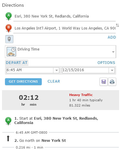 You can now generate routes using a specified start time, and obtain directions based on your chosen time. The directions also include the arrival and departure time at stops, and typical traffic conditions.
