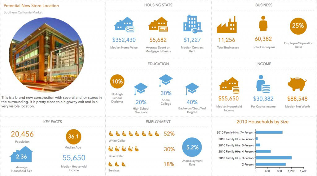 Esri Business Analyst 5.4 enables you to create visually appealing infographics in a few clicks to quickly gain demographic insights for any location.