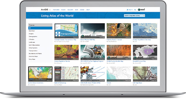 ArcGIS includes a Living Atlas of the World, a curated and continually updated collection of authoritative maps and layers covering thousands of topics. These data can be directly integrated into your workflows, and used to complement your data when authoring maps and apps.