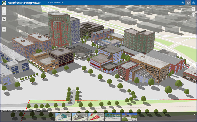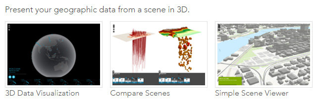 You can now use Web AppBuilder to create custom apps that use 3D scenes. Author a scene, and use it when building your app.