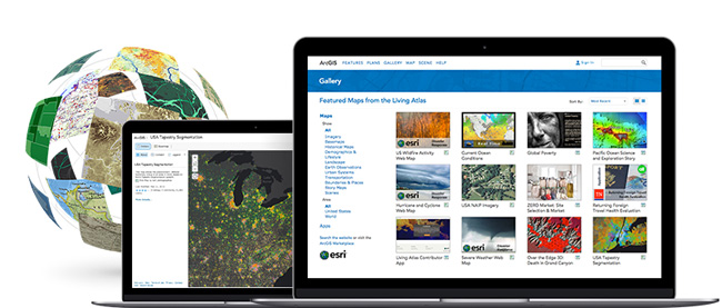 ArcGIS includes a Living Atlas of the World, a curated and continually updated collection of authoritative maps and layers covering thousands of topics. These data can be directly integrated into your workflows, and used to complement your data when authoring maps and apps.