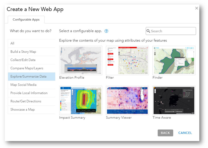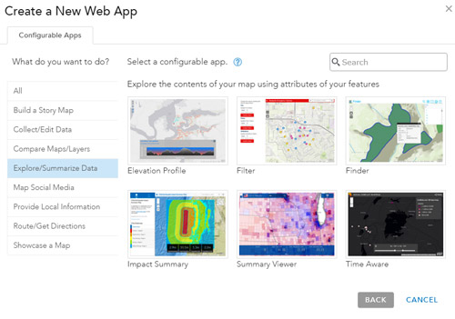 Configurable apps make it easy to share your maps with easy-to-use templates, enabling you to create custom-configured applications without programming. You can make and share apps by choosing from a variety of app templates.