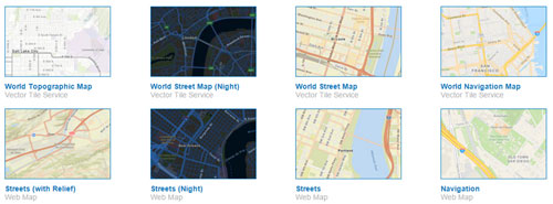 Beta versions of Esri vector basemaps are available as vector tile layers and maps for display in the map viewer, and for use in your own custom basemap galleries. A vector tile layer references a set of web-accessible vector tiles and the corresponding style for how those layers should be drawn. View available basemaps in the Vector Basemaps (Beta) group.
