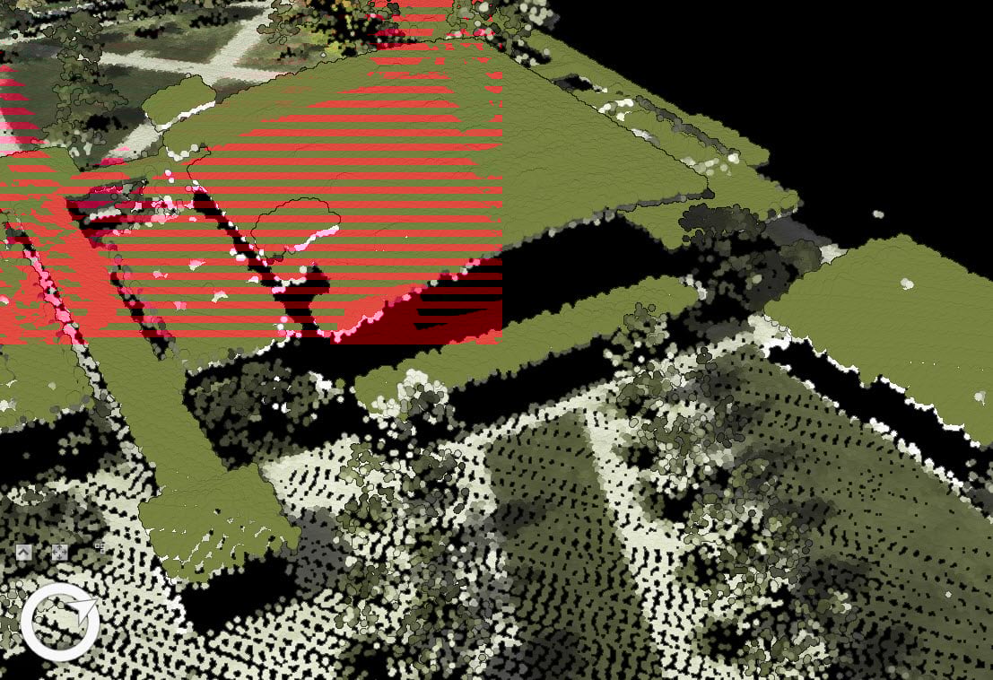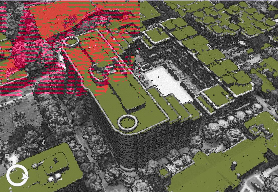 Figure 5 shows a classification of large buildings with multiple levels and complex structures. You can see how building roof points are correctly classified.