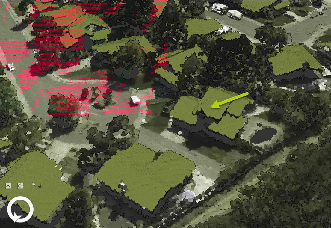 In previous releases, you needed to choose a suitable value for the Minimum Area to classify small planar patches. This value is usually the smallest area of the roof patch you want to classify. Choosing a suitable value was difficult. A larger value could result in smaller roof patches being unclassified, while a smaller value would cause tree points to be misclassified as buildings.