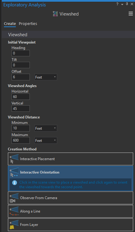 4. Click on Interactive Orientation, which lets us define a viewshed and then the orientation of the observer with a second click.