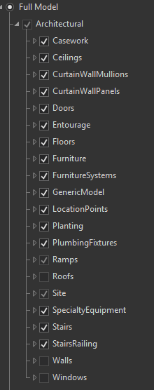 - Prepare the Building. Click on “Full Model” in the Contents pane (This will load the model in its entirety (as opposed to Overview which has just the exterior walls).