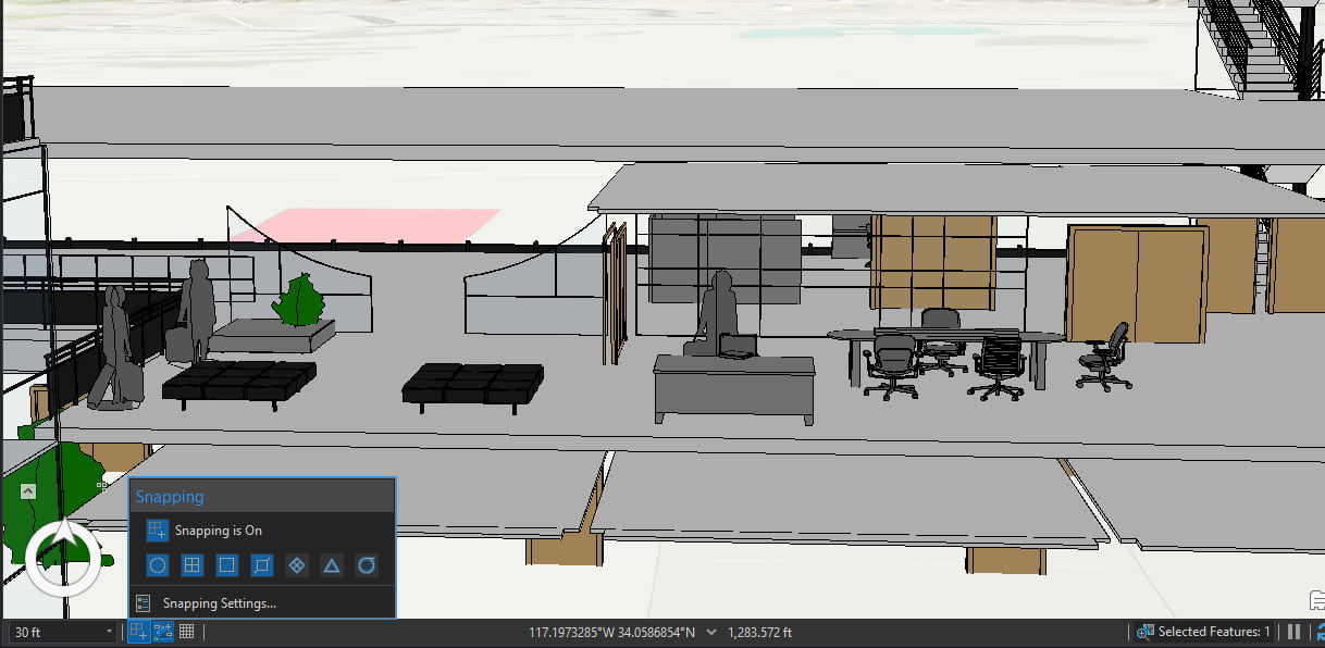 Finally! Now that we have added our building model to the scene, we can start conducting exploratory analyses on it. For visibility, we can set our vantage points to different areas of interest within the building and set up our viewsheds.