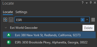4. Press “x” on the Search tool to remove the circle symbology and close the Locate pane.
