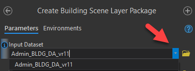 - Open Geoprocessing tool “Create Building Scene Layer Package”. Pick the Building layer in your scene that you would like to publish.