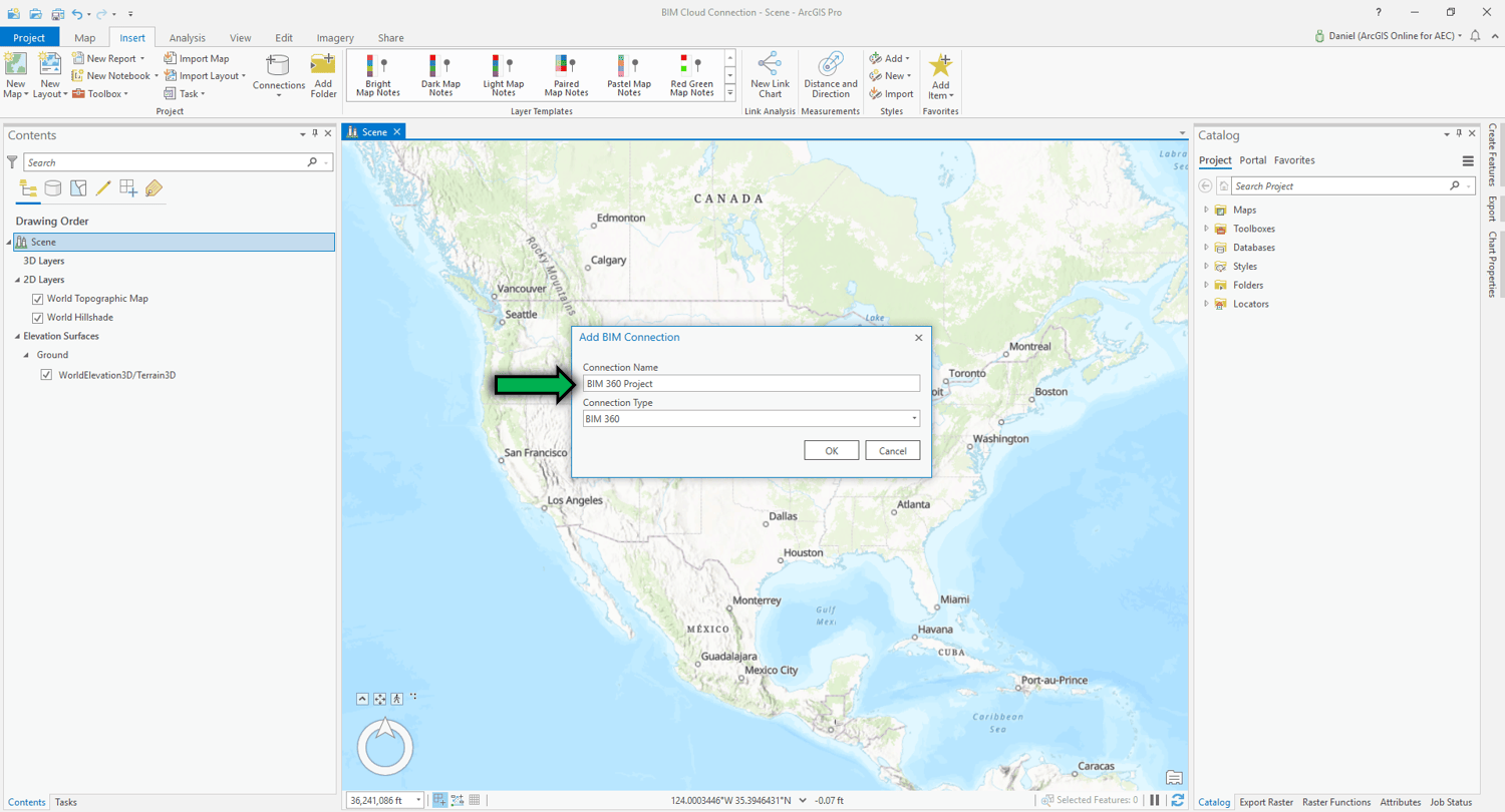 3. Create a Connection Name for the BIM 360 Connection (this is unique to the ArcGIS Pro project)