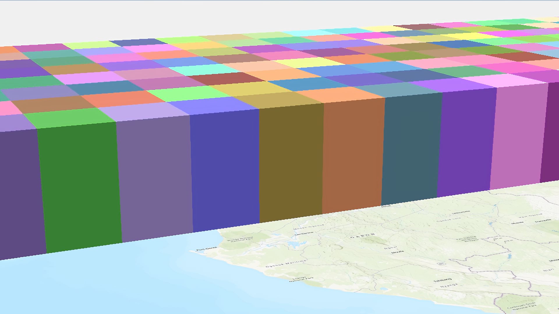 A voxel is a 3D representation of multidimensional data. Much like a pixel is a square that holds a value in two dimensions, a voxel represents a 3D cube with values representing a lateral area (x,y) and a height (z). By opening a scene in ArcGIS Pro version 2.6+, we created a voxel layer using the ‘Add Voxel Layer Wizard’ and pointed to our time-enabled NetCDF file. Once this was created, we could then use default ArcGIS Pro 3D navigation to visualize the spatial and vertical distribution of CO in the atmosphere.