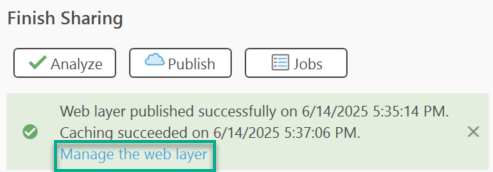 After the layer has been successfully shared, click Manage the web layer link to access its item page.