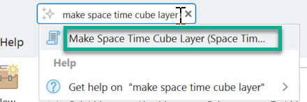 Click the item populated under the search bar and open the Make Space Time Cube Layer tool pane.