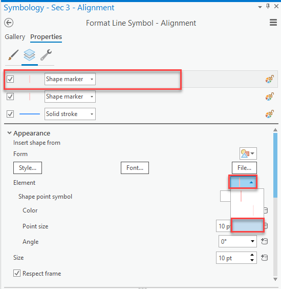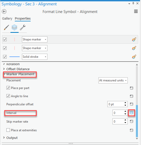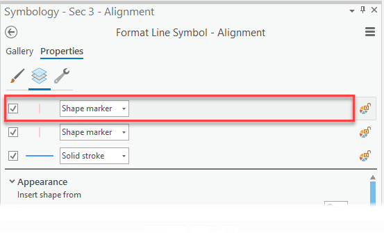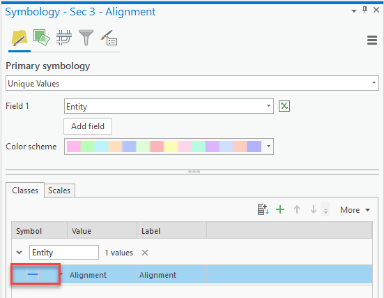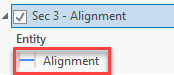 - From the Contents pane, browse to the Alignment feature layer and click Alignment to access to the symbology definition.