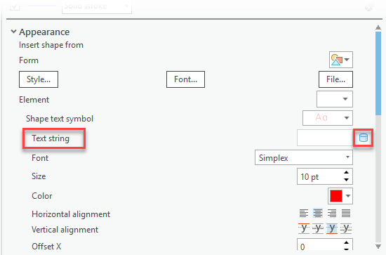 - From the station definition (that we saw how to access in the previous section), expand the Appearance group and open the drop-down list for Element. Then select the last row, which is empty. This will give you access to the text definition.