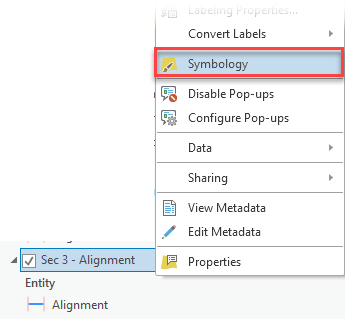 Another way to do so is to right-click the Alignment feature layer and select Symbology.