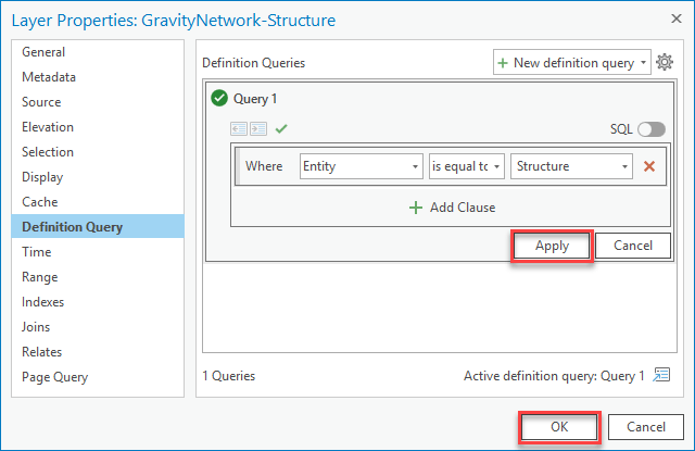 Select the Structure feature layer and go to the layer properties. Click New definition query, and make the new query active.