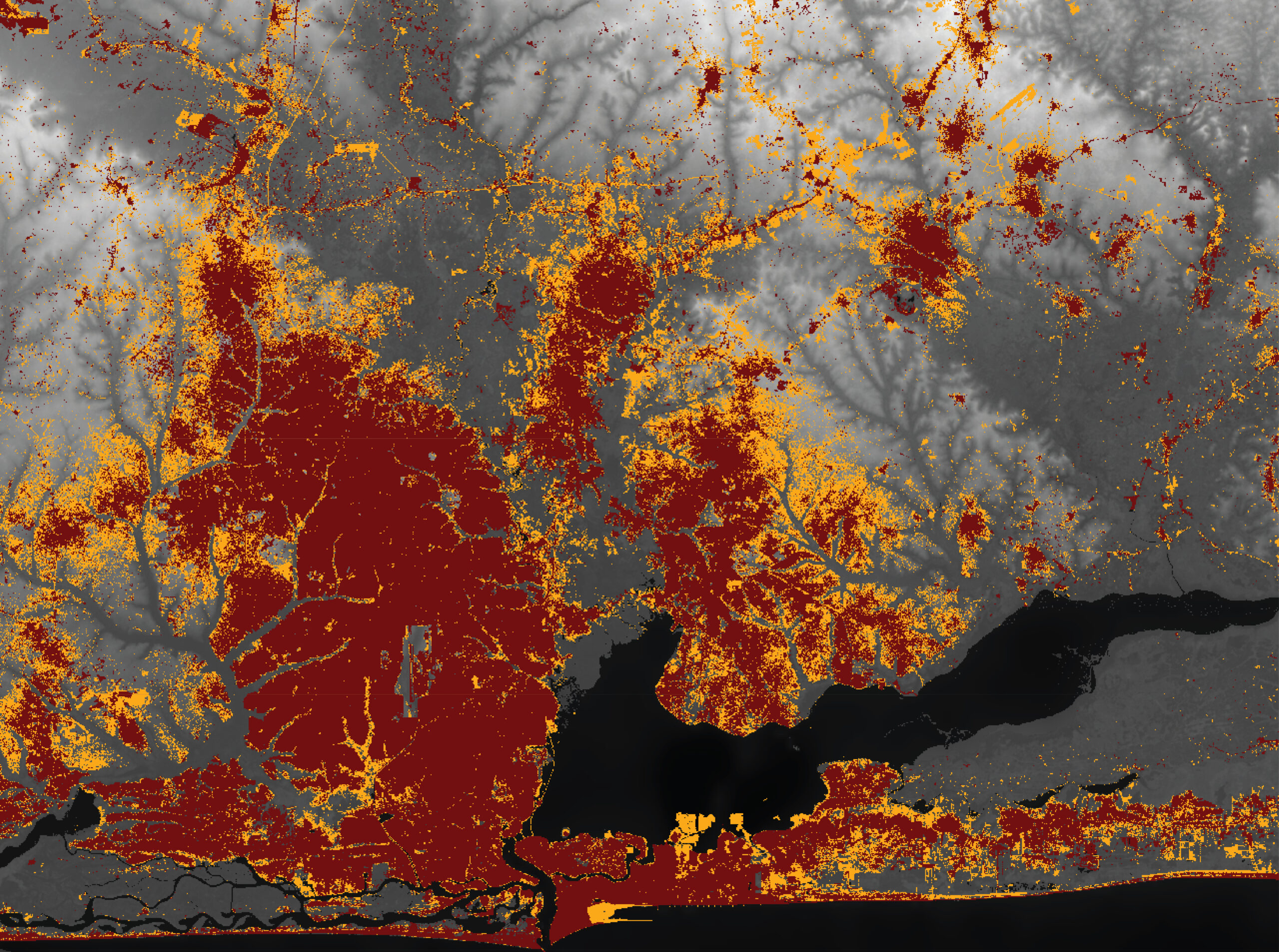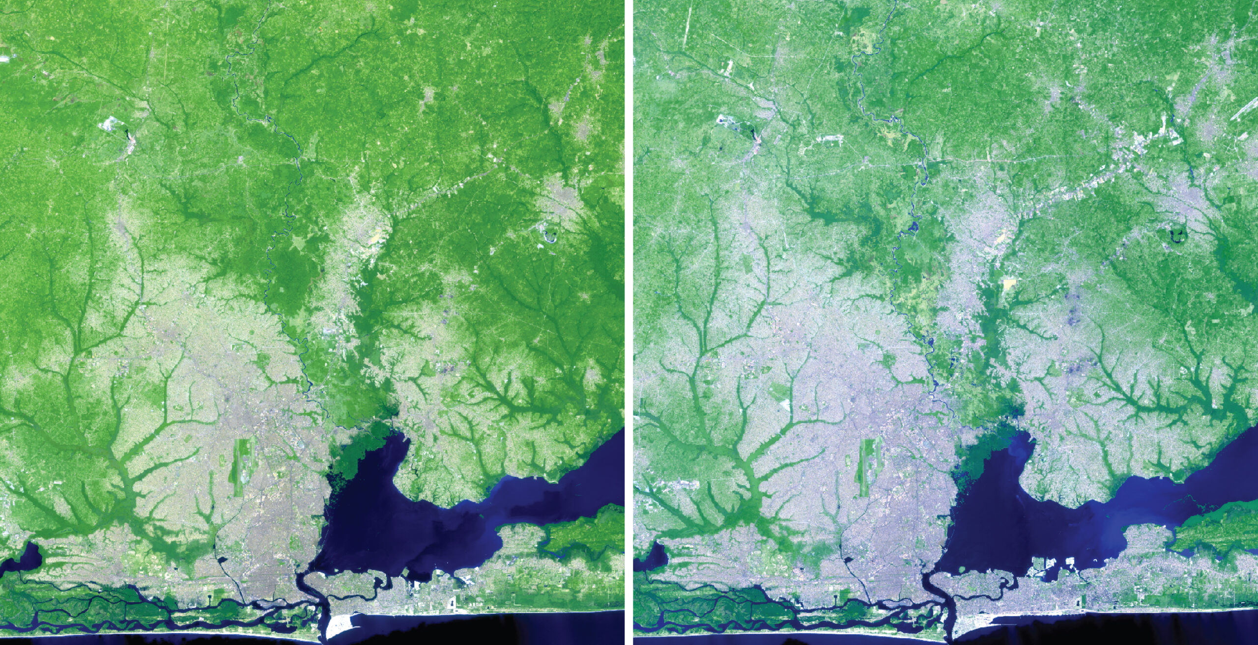Following a similar methodology as in the example of forest logging, I used the two land cover raster datasets to map and measure Lago’s city growth.