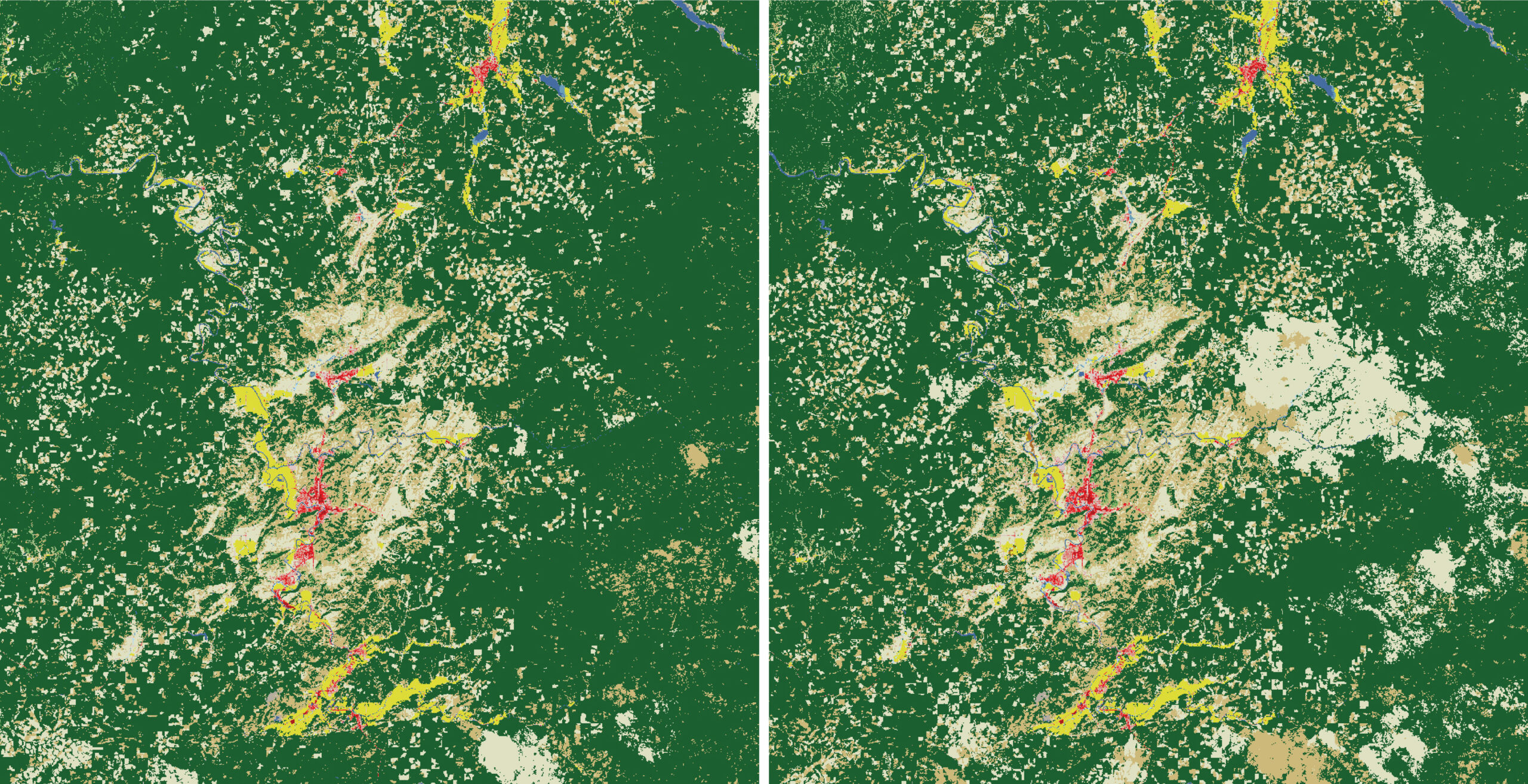 Once I trained the model on a composite image, I ran the remaining steps of the Imagery Classification Wizard. The tool generated a classified land cover raster for each year.