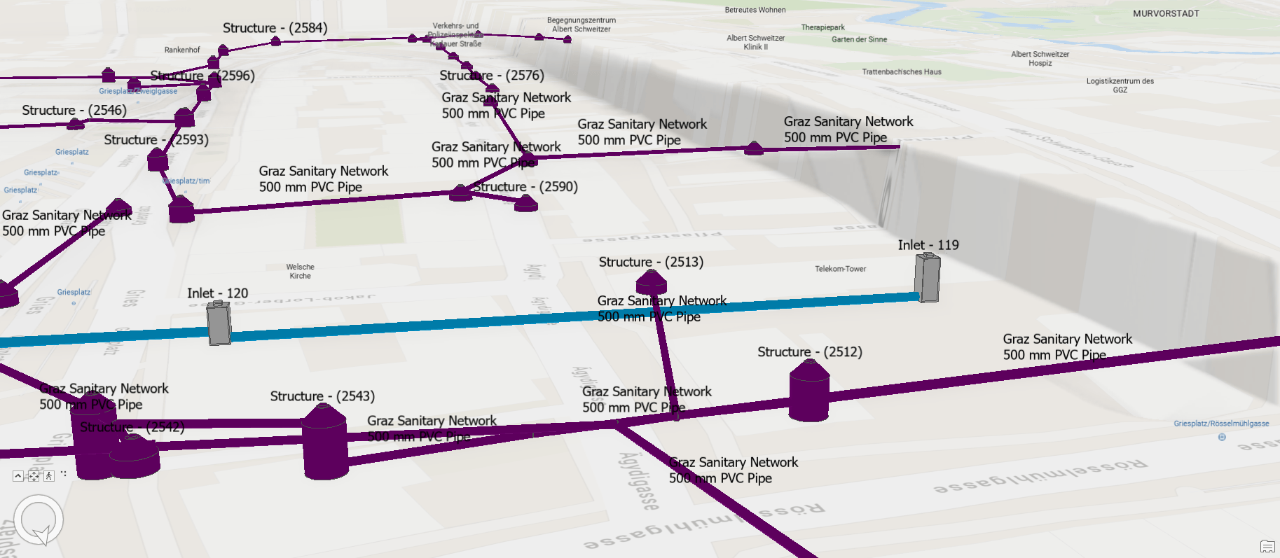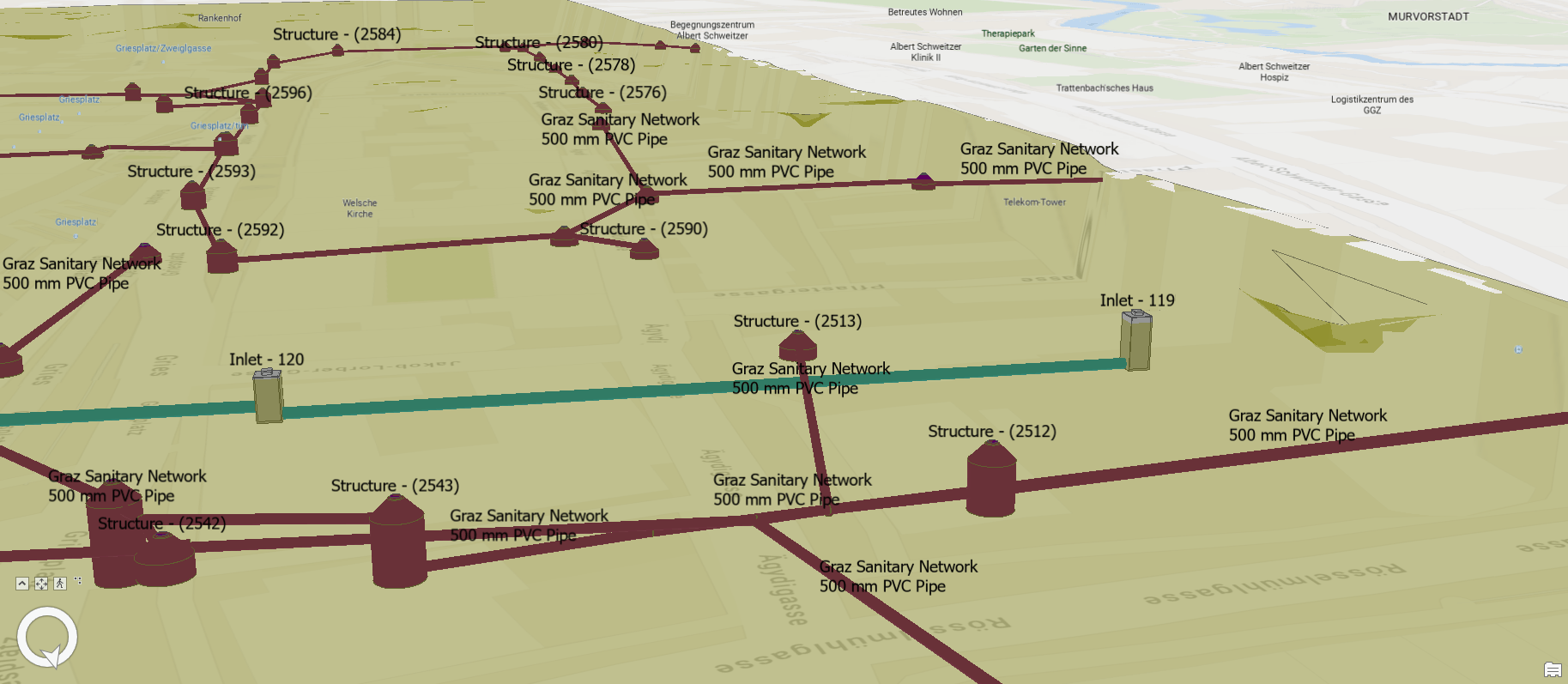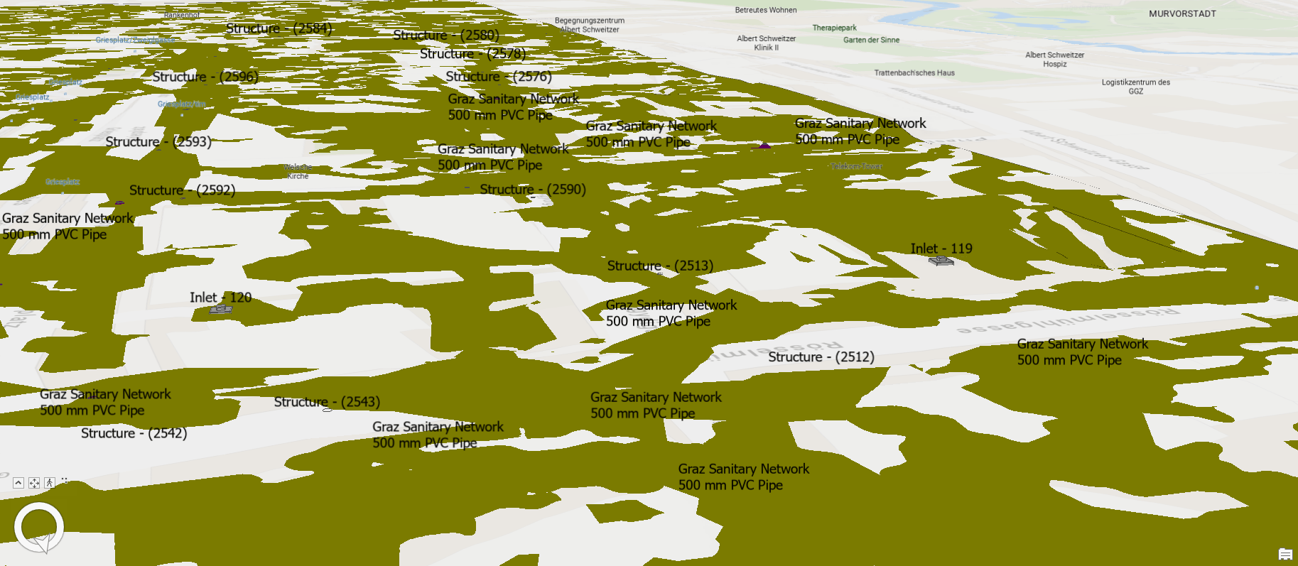 Consider instead the following approach for crafting ArcGIS Pro scenes when working with Civil 3D ground surfaces. This approach harmonizes differences between elevation surface layers for existing and proposed ground, and additionally, enables visualization of built components located beneath the proposed ground surface. Starting with a scene in ArcGIS Pro that contains existing ground and built underground components, the approach consists of the following steps: