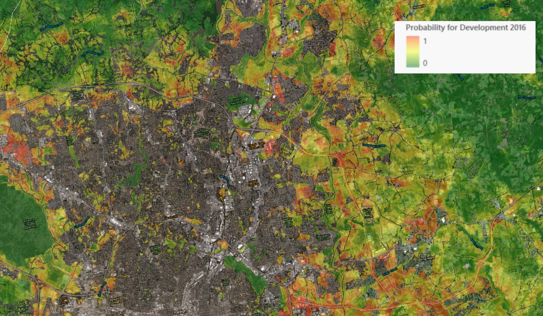 Overall, this project achieved its objective of predicting urban growth in the study area and allowed for the team to leverage their strengths in both ArcGIS and R. The R-ArcGIS Bridge was a key component in ensuring smooth analytic operations and collaboration by enabling R to dynamically access data from ArcGIS Pro and save R results back to an ArcGIS dataset. This prototype project also shows the possibilities of multi-disciplinary analytics teams working closely together to solve complex problems with spatial data science while playing to their strengths and tapping into preferred analysis frameworks.