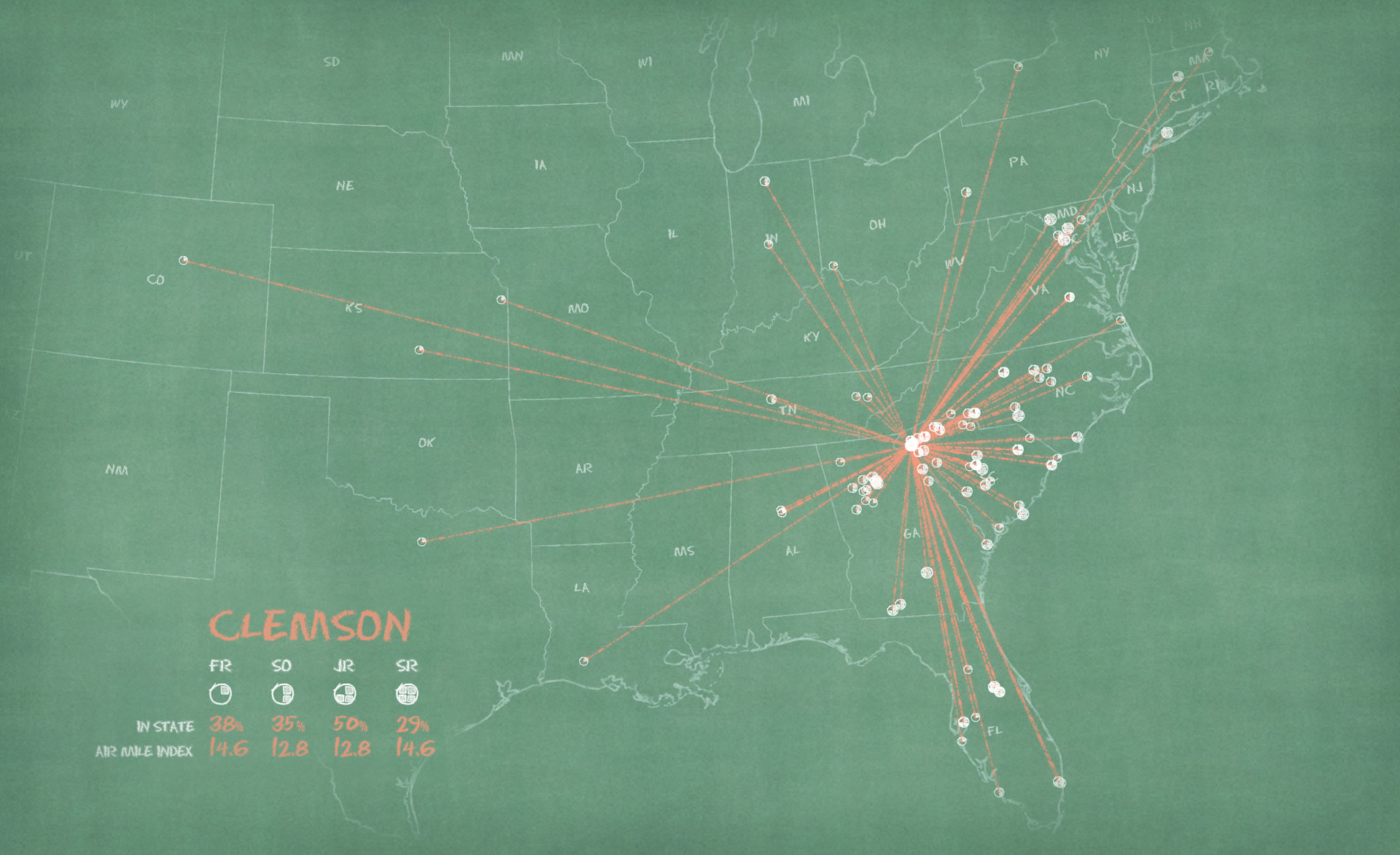 We have to support this or it might not make it. So, in that spirit, I made some maps of the recruitment footprints of all four teams. These footprints are quantified (because I’m a nerd) by something I call the Air Mile Index. Because it is a proxy for how many air miles the assistant coaching staff racks up.