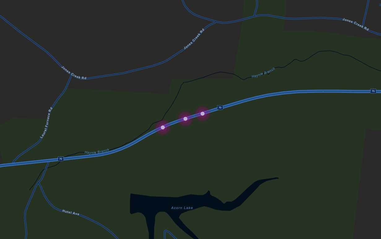 And the following cluster, where all three accidents occurred in the same segment: