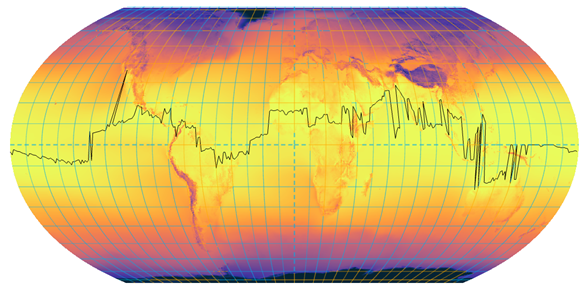 Purpose: The maximum temperature value may occur along each longitude at multiple locations. If so, we must choose only one point to draw the thermal equator. We will select the point closest to the equator (a form of smoothing).