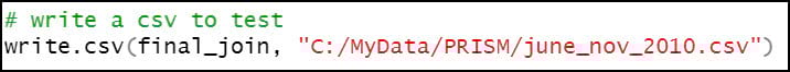 Last, we’ll write out the final joined precipitation dataset as a CSV file that can then be used in ArcGIS, or in other data science and analytics software.