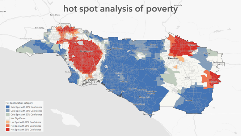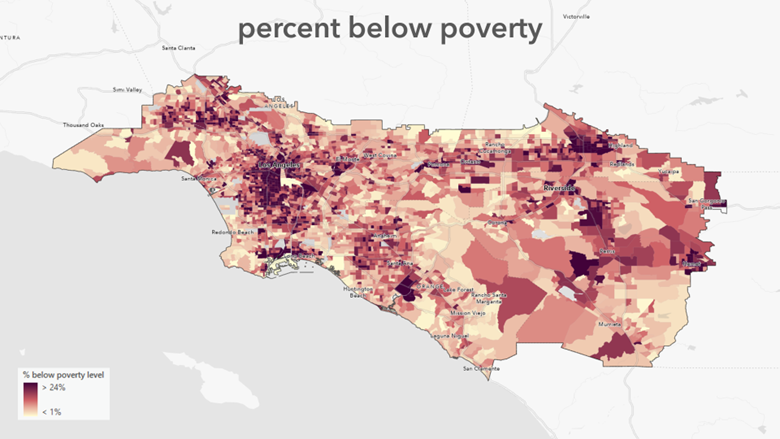 To help us wrap our minds around these concepts, let’s consider a map of poverty in the Los Angeles region.