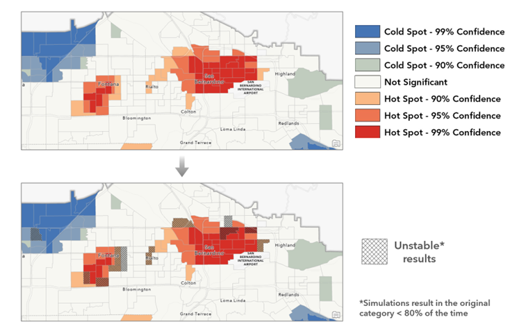 In this example, the hot spot location clicked resulted in a “Not Significant” result in 43% of the simulations.