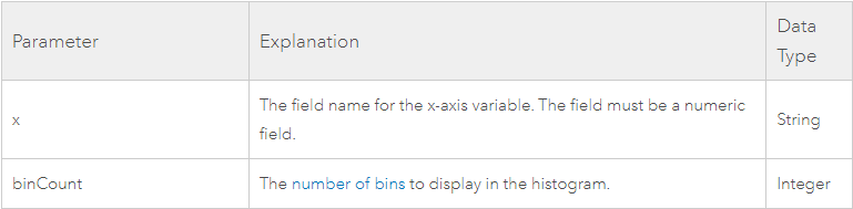 The parameters above correspond to arguments for the arcpy.charts.Histogram class: