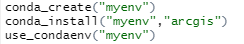 After loading the reticulate package in RStudio, we can install the ArcGIS API for Python (“arcgis”) into a virtual environment using conda_install.
