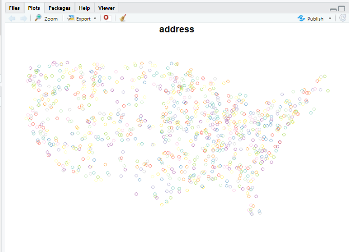 Some times you may want to take advantage of the advanced cartographic capability in ArcGIS Pro to map and visually evaluate the R analysis results with spatial data. In addition, ArcGIS provides a comprehensive set of spatial analysis methods and algorithms to supports site selection, clusters analysis, and space time pattern mining. The last step in our example is to use the R-ArcGIS Bridge to convert the geocoding results to a local feature class for further analysis in ArcGIS Pro.