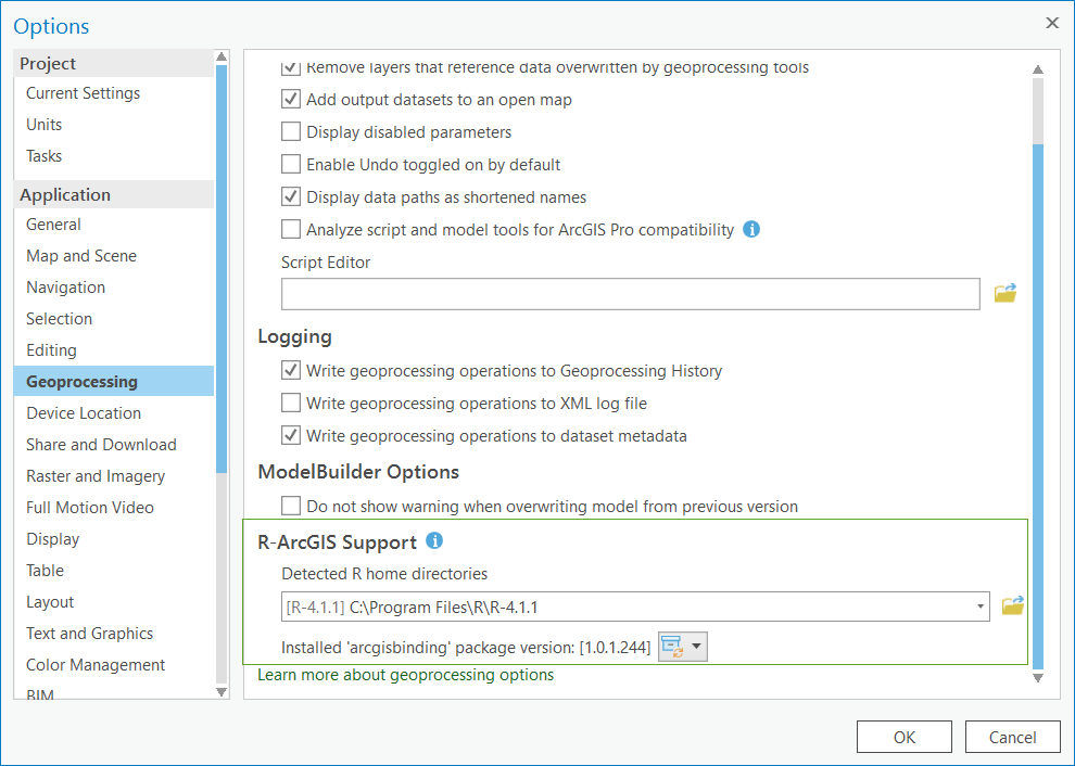 The process begins with setting up R-ArcGIS Bridge on a computer where R, RStudio, and ArcGIS Pro are installed. Note: ArcGIS API for Python is included with the ArcGIS Pro install. R-ArcGIS Bridge can be set up using the R-ArcGIS Support option in ArcGIS Pro Geoprocessing tab under Options.