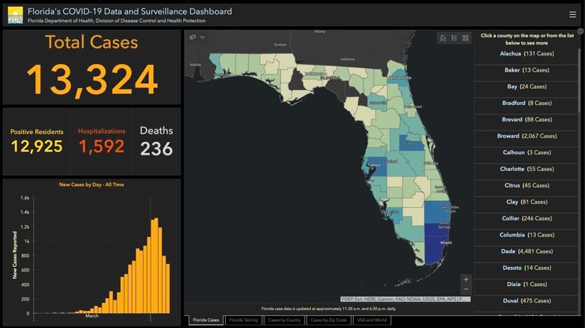 - Florida’s COVID-19 Data and Surveillance Dashboard from the Florida Department of Health, Division of Disease Control and Health Protection