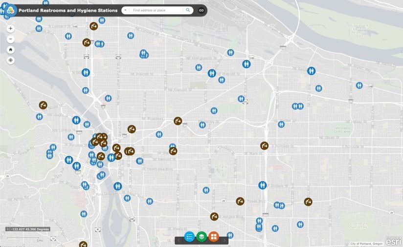 - Portland Restrooms and Hygiene Stations, part of the PortlandMaps open data and mapping site for Portland, Oregon