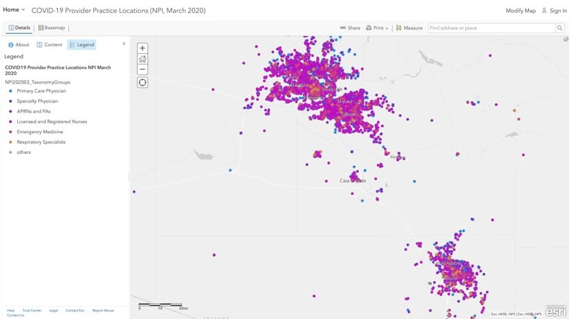 When digging deep into analytics, the MapMasq plug-in to ArcGIS assists organizations in aligning with the Health Insurance Portability and Accountability Act of 1996 (HIPAA) privacy protection rules. Data can be properly anonymized as points or aggregated using various methods that still allow a localized view. Authorities run and rerun these and other spatial analytics for ongoing monitoring across space and time to keep on top of changing conditions.