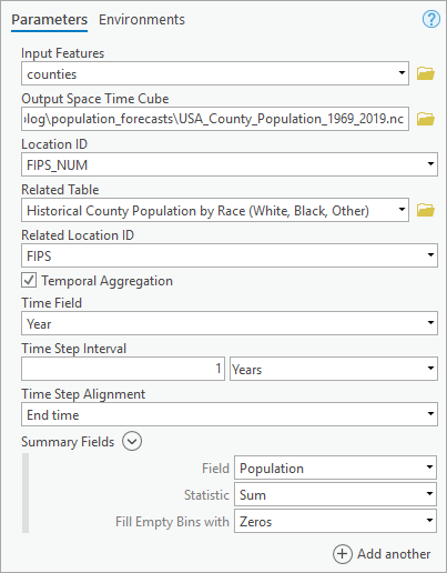 - For Input Space Time Cube, specify USA_County_Population_1969_2019.nc.