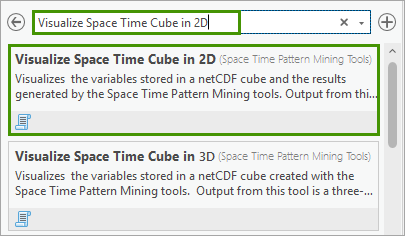3. In the Geoprocessing pane, in the search box, type Visualize Space Time Cube in 2D. In the search results, click Visualize Space Time Cube in 2D to open the dialog.