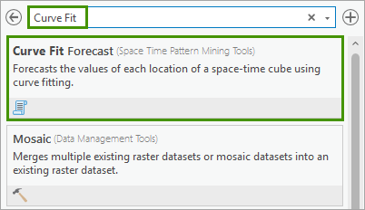 1. In the Geoprocessing pane, in the search box, type Curve Fit. In the search results, click Curve Fit Forecast to open the dialog.