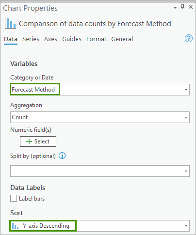 5. In the Chart Properties pane, on the Data tab:
