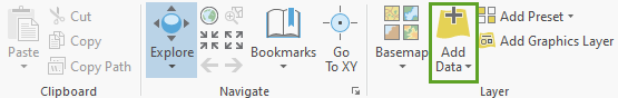 4. On the Map tab, in the Layer group, click the Add Data button.