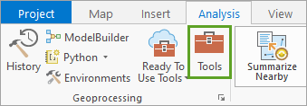 6. On the ribbon, on the Analysis tab, in the Geoprocessing group, click Tools.